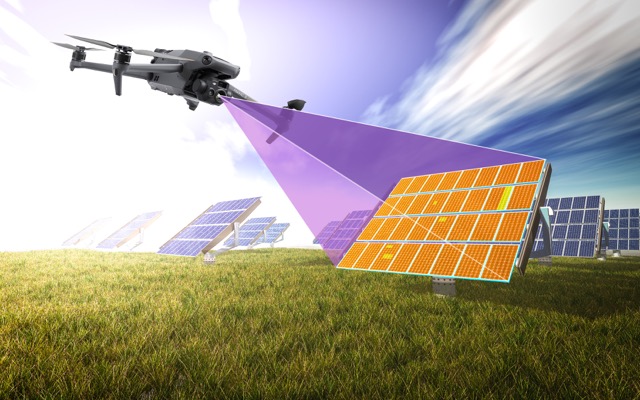 Dron vybavený termokamerou s vysokým rozlišení snadno detekuje vadné panely nebo části panelů vaší fotovoltarické elektrárny.